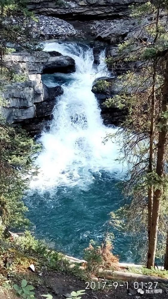 天刚露鱼肚白的曙光,我们便开往幽鹤国家公园了,途中被一条“银河落九天”的耀眼瀑布吸引,停下了脚步。