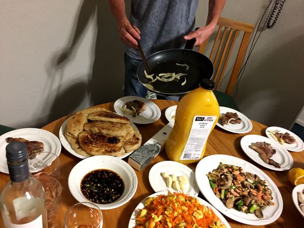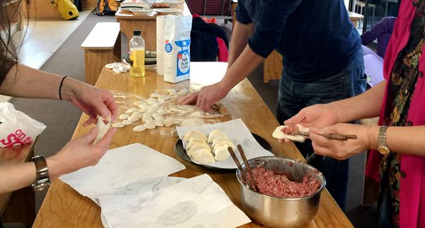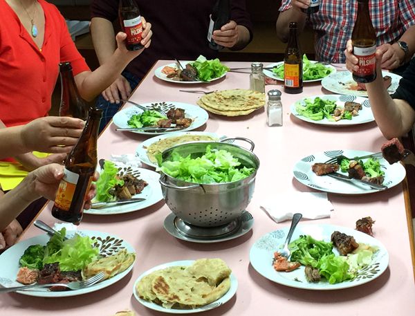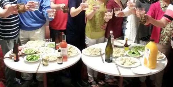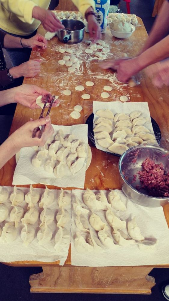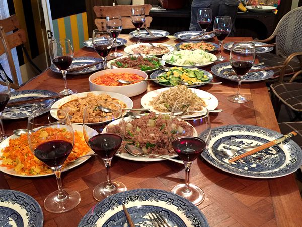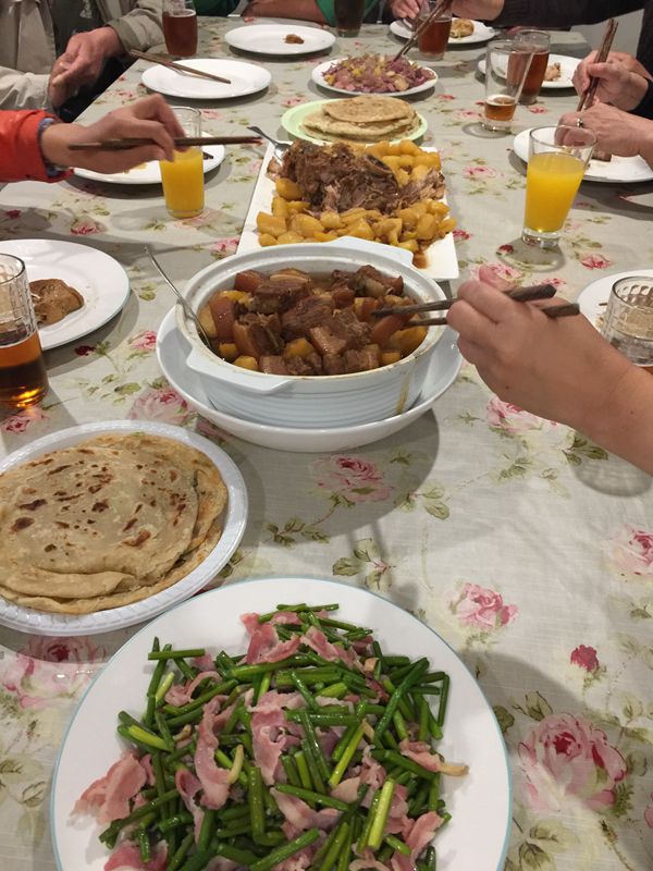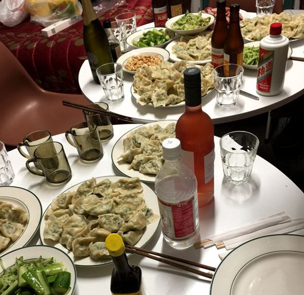 我们每顿晚餐都做了一桌子菜,还有啤酒,红酒和白酒。因为同学们是北方人,所以,我们做了几次饺子,馅饼,葱油千层饼。每晚厨房里欢声笑语,还有人唱歌耍活宝,热闹得像在开Party。