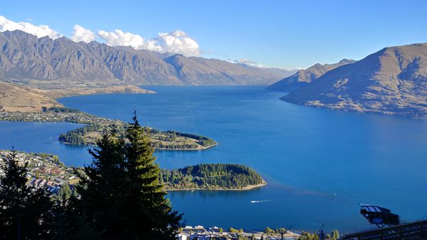 皇后镇山顶最有名的餐厅吃海鲜大餐,每人100元,窗外是青山碧湖环绕,神仙的享受。