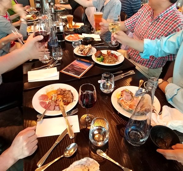 我们到了那里一看,果真非常贵,一个炒菜五十美金。得,我们自己动手做!后来,除了特色餐馆外,绝大部分晚餐都是大家一起做的。