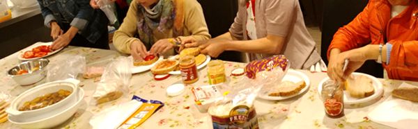 女生们在晚上准备第二天的午餐:三文治 (如果知道第二天的景点周围荒凉的话)