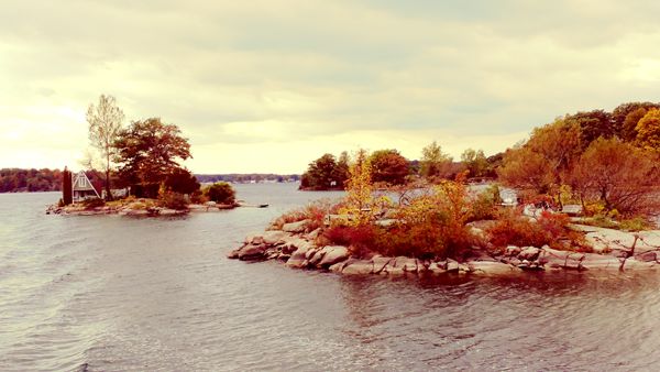 10月14日,加拿大小镇 Gananoque:这是游千岛湖时上船的旅游小镇,秋天的小镇被殷红和鹅黄染成了童话的颜色。