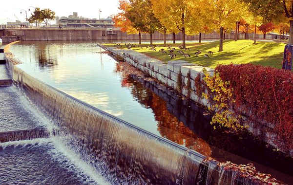 蒙特利尔老港(Old Port)水边的秋色