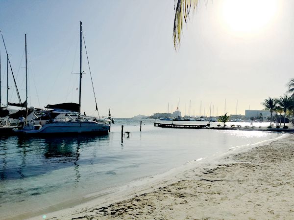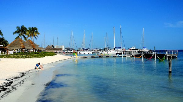 白天我们的计划是报名去“女人岛一日游”,因为风大浪高,渡船取消了。不得已,我们只能从酒店岛“7”字区北段的码头Playa Tortugas出发,沿着各具特色的酒店群的后海滩,朝着自己住的酒店闲逛了。