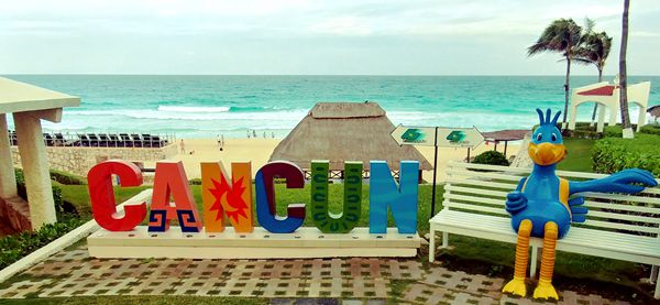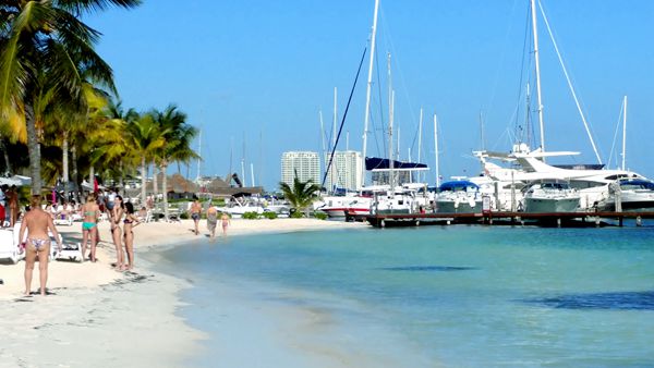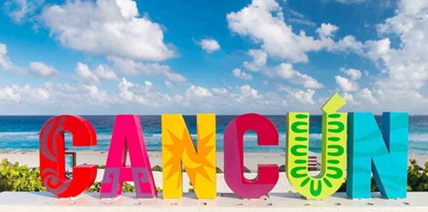 在7字竖条尾段的公共沙滩Playa Delfines上,有标志性的“CANCUN”大字,是著名打卡背景。