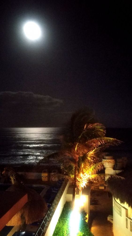 俯首窗外,白天的人声,鸟声,墨西哥鼓点声都消融进夜色中,一片寂静,听到的只有海浪和沙滩的情话绵绵。