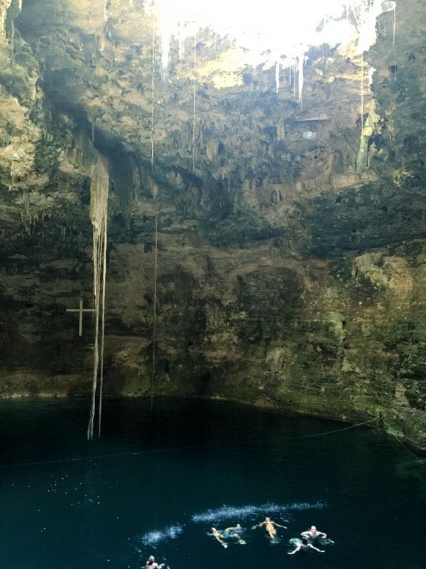 坎昆有几百个这样的地下淡水井,里面可以游泳,跳水。可以看到蓝天。