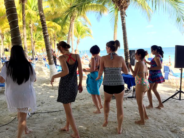 酒店的沙滩上有桑巴舞教学班