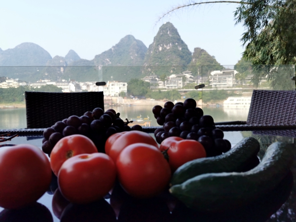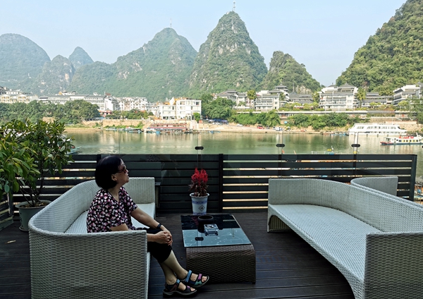 于是,我们想出了一个好主意:在阳朔订了一个漓江岸边的民宿,连住五天。他们两位老人家可以悠闲地坐在房间观景色。高兴了就出门转转,累了就坐在阳台上望游船,望山水。