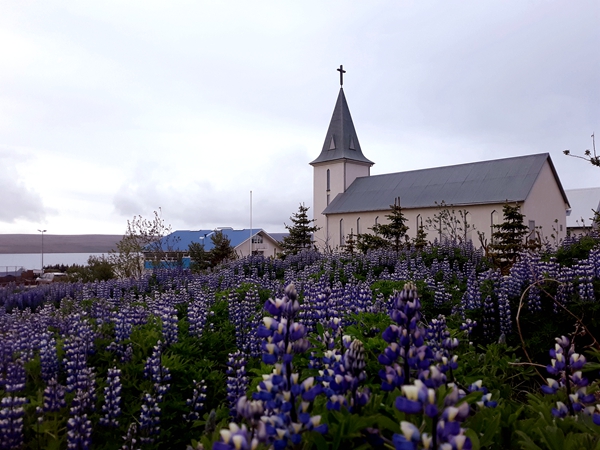 冰岛的六月鲁冰花开成了海,紫色晶莹的海。配上红色的小教堂变成了网红打卡点。