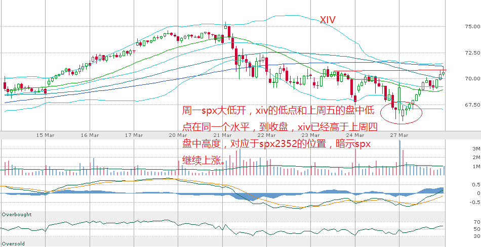 今天大盘大低开的直接原因是,上周五,川普总统的健保法案被搁置,川普新政的信用度被怀疑,连续三个多月来的川普行情的基本面某种程度上被损害。dow和spx双双直接低开在50天均线上,卖,买双方围绕50ma争夺,在开盘后前30分钟,指数稍有下跌,此后进场买底者众,指数慢慢上升,到收盘,dow跌0.2%,spx跌0.1,naz涨0.2%.。昨天收盘,vix和vix期值均大幅下跌,暗示今天大盘可能要继续反弹向上,目标33天均线2357。个人看法,仅供参考。