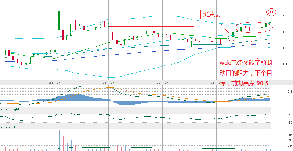 4月28日wdc发布季报,销售和每股盈利基本和分析师的预期持平,但是下季盈利超过分析师预期20%,2017预期P/E=10,2018预期P/E=7.8. 分析师给出的股价平均值为111. 当前价格为89. 因此该股还有继续上升的潜力。wdc季报后第二天,跳空高开后,连续几天回落,原因是wdc的合作者,日本东芝公司半导体分部因为东芝的债务危机而被招标出卖,目前有四个买家进入第二轮投标。如果东芝半导体分部被wdc之外的第三家买走,这将对wdc的nand业务带来负面影响。因为wdc和东芝半导体分部有合作协议,wdc提出反对出卖半导体分部的声明。目前这件事情还没有被最终决定如何处理。但今天wdc股价开始止跌,收盘前已经涨2%,或许对东芝半导体分部的处理还要拖一段时间,此事暂时对wdc的影响不大。考虑到目前大盘方向不明,我今天盘中仅仅买进了少量wdc,继续观察该股近期的走势。