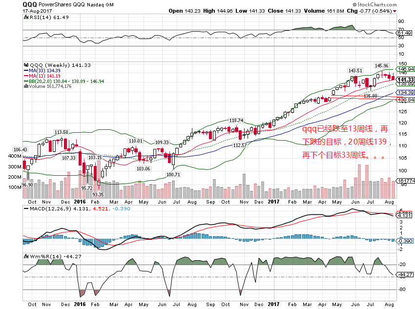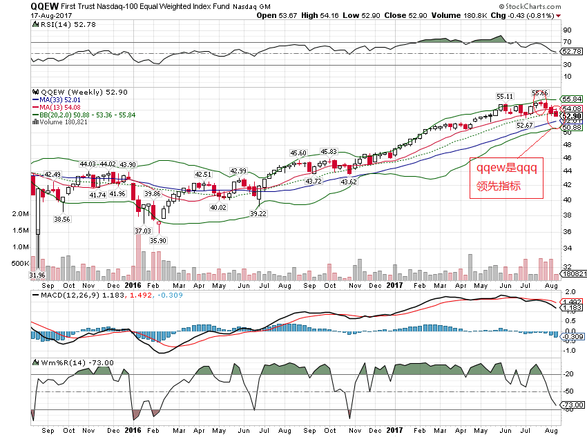 近期的观察发现了一个有趣的现象,spx和qqq的equal weight etf, rsp 和 qqew 分别显出某种领先指标功能。即,相对于spx和qqq指数,上升浪中,rsp和qqew提前几天到顶,下跌浪中,它们率先跌破均线。例如,spx和qqq仍然还处于20周线上方,而rsp和qqew已经明显的跌破了20周均线(见下图)。equal weight etf 的走势领先于对应的指数暗示,MM用faang等大权重托住指数,制造假象,稳住散户,同时它们自己暗中清仓小盘股。到昨天到收盘,faang和msft,nvda等大权重股没有显出任何止跌的迹象,因此,大盘和科技股还要继续跌下去。本次大盘下跌的具体目标在那,只能走一步看一步,不可能提前看出最终目标在那儿。在下跌的趋势过程,在几个重要的支持点位,指数有可能暂时止跌,反弹。抢反弹者可以用少量资金买进3倍指数,快进块出,要避免买进个股·。个人看法,仅供参考。