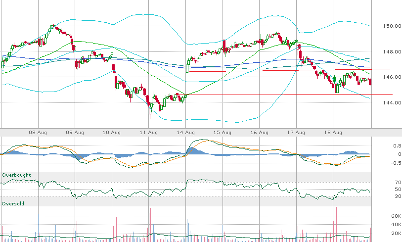 | | Calls  | | Bid | | Ask | | Last | | Change | | Vol | | Op Int | | | | 140.0 Call | | 1.03 | | 1.94 | | 1.27 | | -0.31 | | 4,176 | | 50,788 | | | | 140.5 Call | | 0.76 | | 1.04 | | 0.70 | | -0.50 | | 1,591 | | 962 | | | | 141.0 Call | | 0.26 | | 0.54 | | 0.26 | | -0.53 | | 26,346 | | 9,503 | | | | 141.5 Call | | -- | | 0.02 | | 0.02 | | -0.46 | | 17,505 | | 4,827 | | | | 142.0 Call | | -- | | 0.01 | | 0.01 | | -0.23 | | 85,469 | | 84,248 | | | | 142.5 Call | | -- | | 0.01 | | 0.01 | | -0.11 | | 27,753 | | 15,072 | | | | Strike | | 140.00 | | 140.50 | | 141.00 | | 141.50 | | 142.00 | | 142.50 | | | | Puts  | | Bid | | Ask | | Last | | Change | | Vol | | Op Int | | | | 140.0 Put | | 0.01 | | 0.02 | | 0.01 | | -0.16 | | 46,988 | | 155,787 | | | | 140.5 Put | | -- | | 0.01 | | 0.02 | | -0.26 | | 22,469 | | 20,678 | | | | 141.0 Put | | 0.01 | | 0.02 | | 0.01 | | -0.42 | | 69,777 | | 43,281 | | | | 141.5 Put | | 0.12 | | 0.34 | | 0.15 | | -0.49 | | 25,716 | | 22,696 | | | | 142.0 Put | | 0.62 | | 1.14 | | 0.70 | | -0.22 | | 64,131 | | 115,208 | | | | 142.5 Put | | 0.95 | | 1.40 | | 1.15 | | -0.08 | | 2,190 | | 20,194 | | | | |