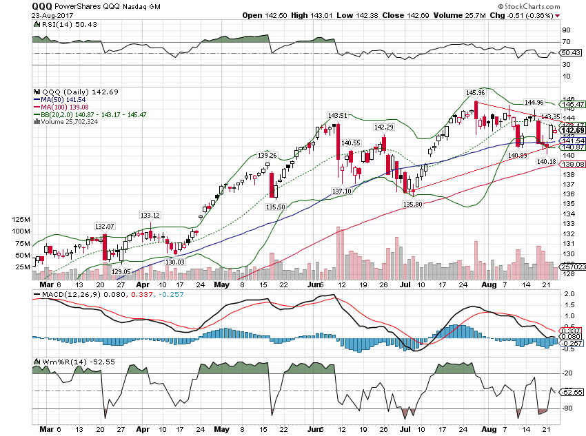 到周三收盘,qqq和soxx仍然延续着近似对称三角形的形态。类似这种接近到三角形顶端还没有出现突破的迹象的情形,后市一般不看好。个人观点,仅供参考。