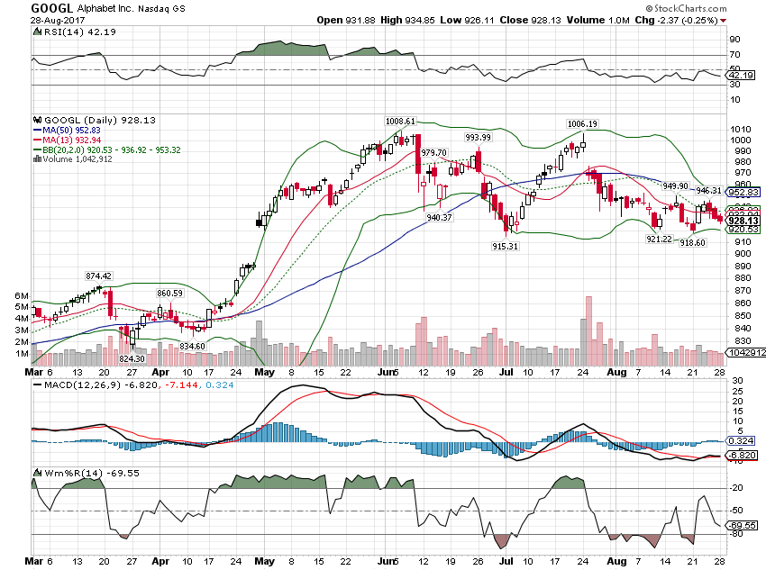 上周五和今天spx和qqq的走势被MM严格地控制在三角形形态之内,还是看不清后市走向。两个最大的牛股googl和amzn近几天的走势可能给出大盘后期走势的一点线索。这两个股走势明显拖累大盘和qqq,没有一点止跌反弹的迹象(见下图)。特别是,goog面临补回上周的跳空缺口。这两个过气的牛股止跌回升之前,任何大盘的反弹都仅仅是昙花一现。 个人看法,仅供参考。