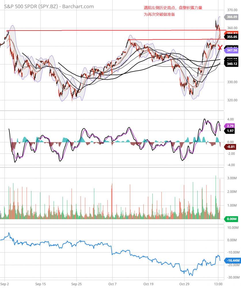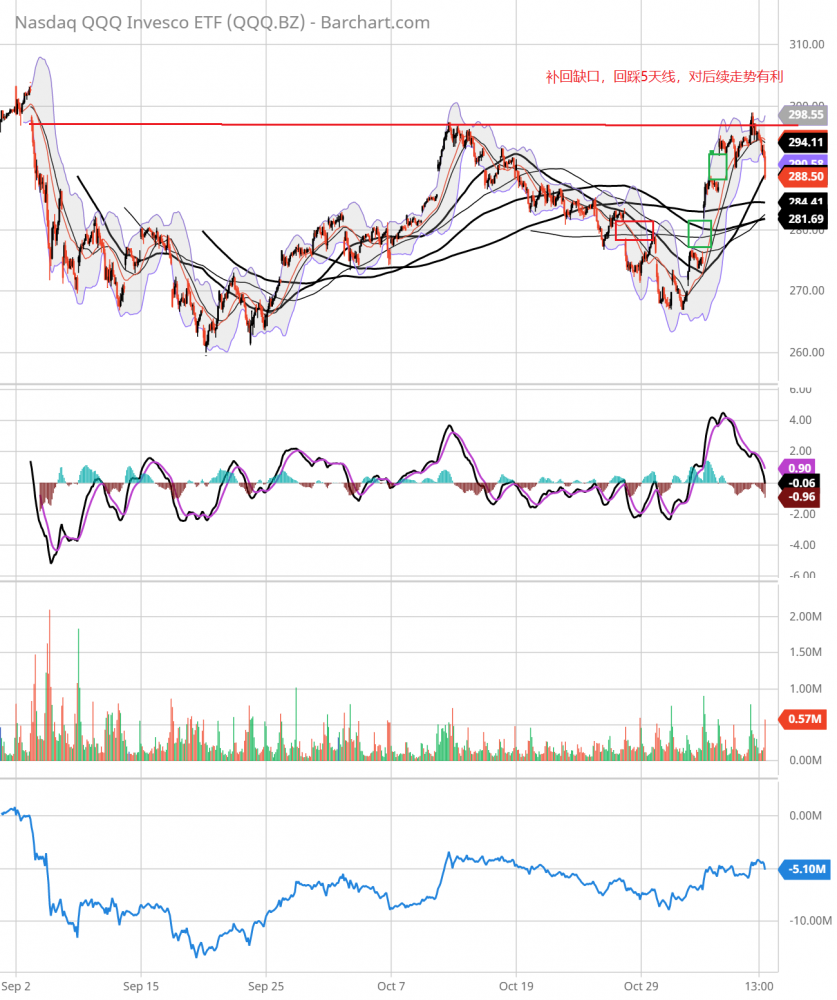 TA观察,大盘遭受左侧历史高点的压力,高开后回落,收盘在2天均线,不排除继续回落,下探5天均线。qqq已经回补了左侧缺口,收盘在5天均线,也可能继续下探13天均线。大幅下跌的概率不大。