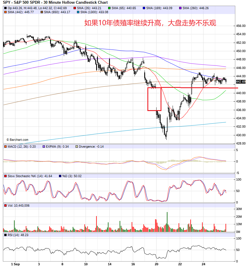 上周五盘后博文指出,10年债殖率大幅上升,利空科技股,对传产股利好。今天10年债殖率中再次升高,科技股再次遭受卖压(见图)。qqq低开0.7%,全天在低位横盘,收盘跌0.8%。受科技股拖累,大盘小幅低开后,全天震荡,收盘跌0.29%。xli高开走低,收盘涨0.1%,xlf涨1.3%,dow涨0.21%。aapl跌1.1%,msft跌1.7%,goog跌0.7%。sox低开走高,收盘时收复了大部分跌幅。