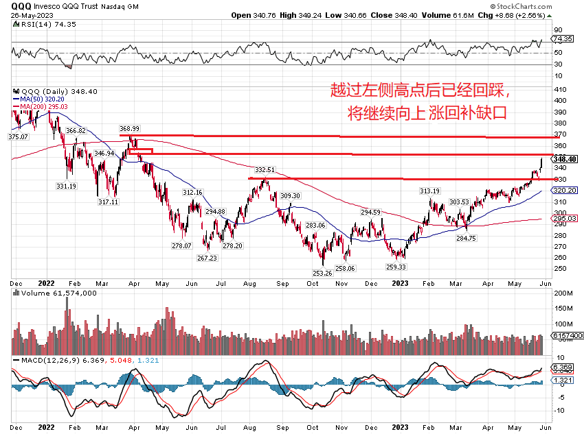 qqq已经回踩左侧支撑位,将继续上涨冲击上方的缺口。sp500的宽度指标有明显改善,暗示大盘下周将继续上涨,回补左侧的缺口(见图)。nas距离左侧高点还有1.5%幅度,如果受阻回落,是加仓qqq的机会。