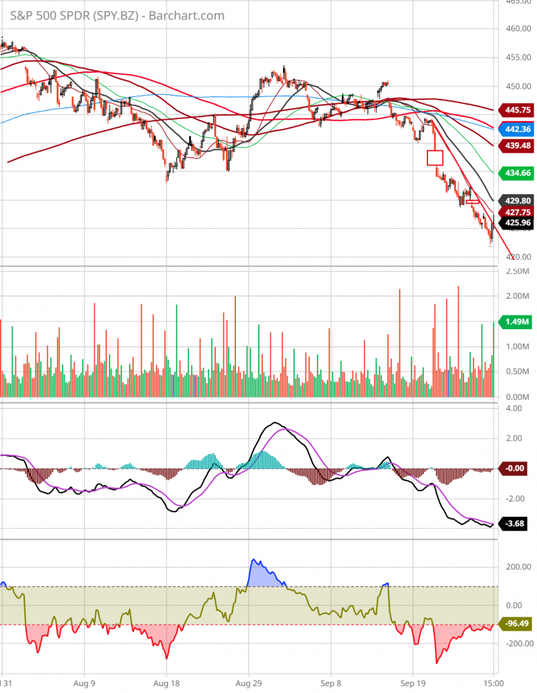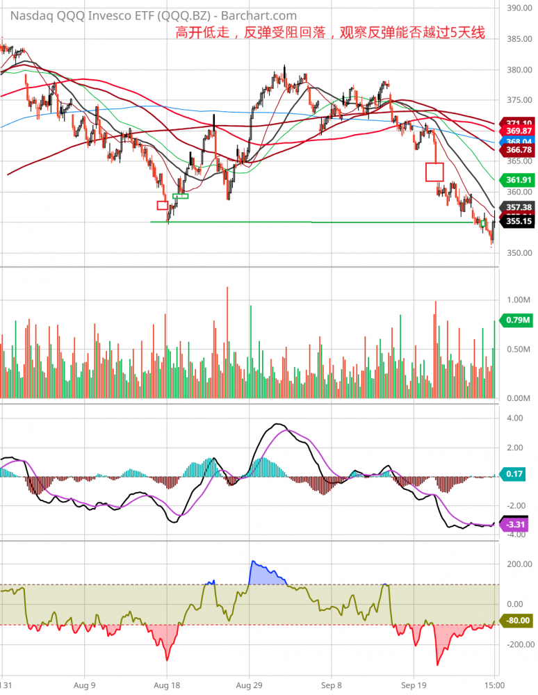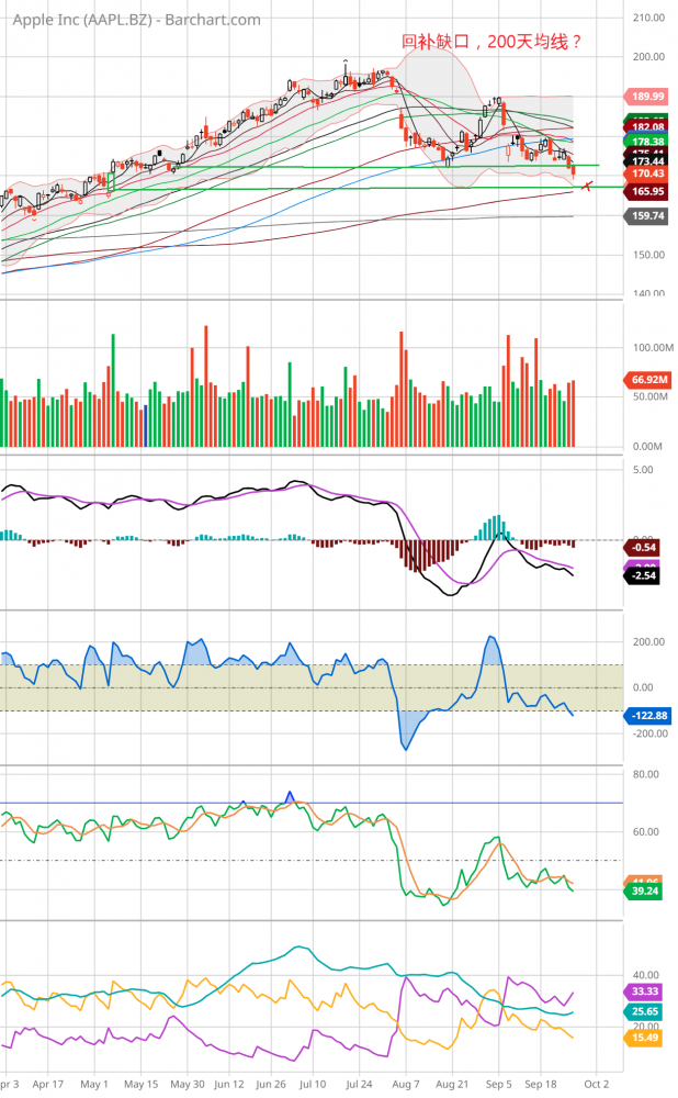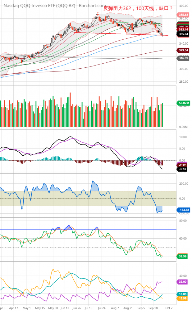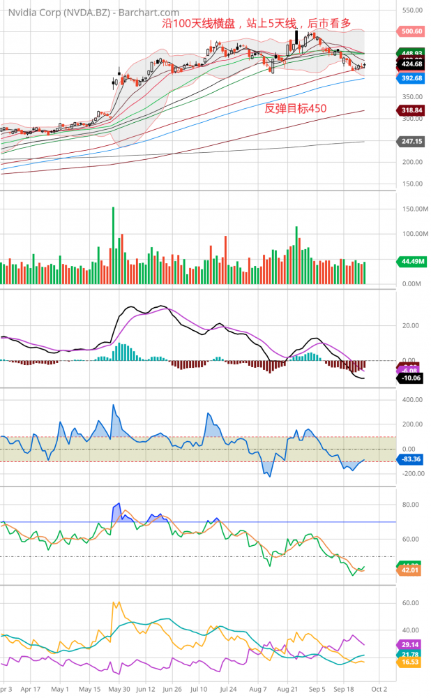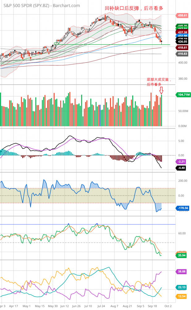 周三下午2点,大盘下跌0.8%。突然传来消息,参院共和党发言人表示对民主党提出的财经法案表示满意,朝向避免政府停摆进了一步。受次利好消息激励,大盘从底部反弹,到收盘涨0.02%,nas,qqq涨0.22%,dow跌0.2%。aapl跌0.89%,msft涨0.21%,googl涨1.54%,amzn平收盘。soxx涨0.88%,amd涨2.2%。amd宣布推出新的fpga处理器。nvda涨1.33%,asml涨0.3%,有分析师推测asml可能面临2024年被顾客砍单。arkk涨0.65%,tsla跌1.45%,德银分析师预测tsla2024年销量小于预期。