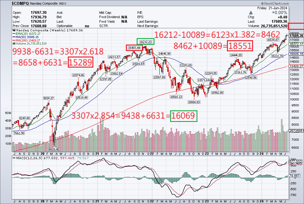 用Fib数列拟合nas的走势曲线,不像处理dow那样100%地完美,但仍然具有参考价值,不再详述,具体见图。