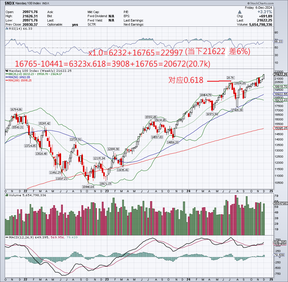 周五spx收盘6090,距离fib数1.0对应的6146低1%,has收盘19860,距离Fib数0.618对应的19996低0.7%。ndx周五收盘21622,距离Fib数1.0对应的22997低6%。dow上周盘中最高点45.1k,Fib数1.0对应的点位45.3k。上周dow收盘跌0.6%。