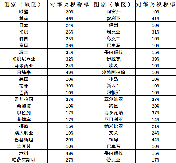 周三盘后穿普发表对等关税(见表),4月9日正式执行。同时汽车关税20%,4月2日执行。另外近期将对半导体和电子产品加征25关税。消息公布后,期指大幅下跌,nq已经跌穿预期的目标价,es接近关键支撑区(见图)。随着公布半导体和电子产品关税,美股将再次下跌,目前应该持币观望,等待半导体关税公布之后再伺机进场。