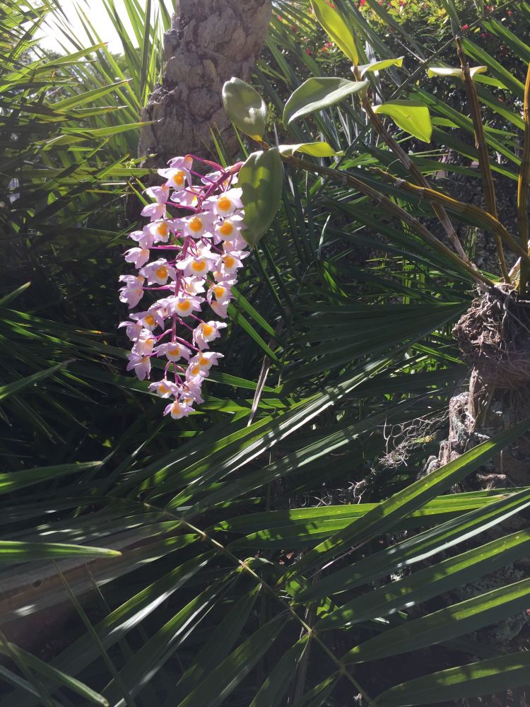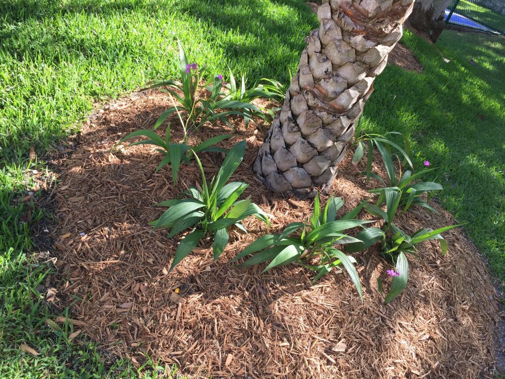 给后院每棵棕榈树脚上带上一圈土兰花脚鐲。