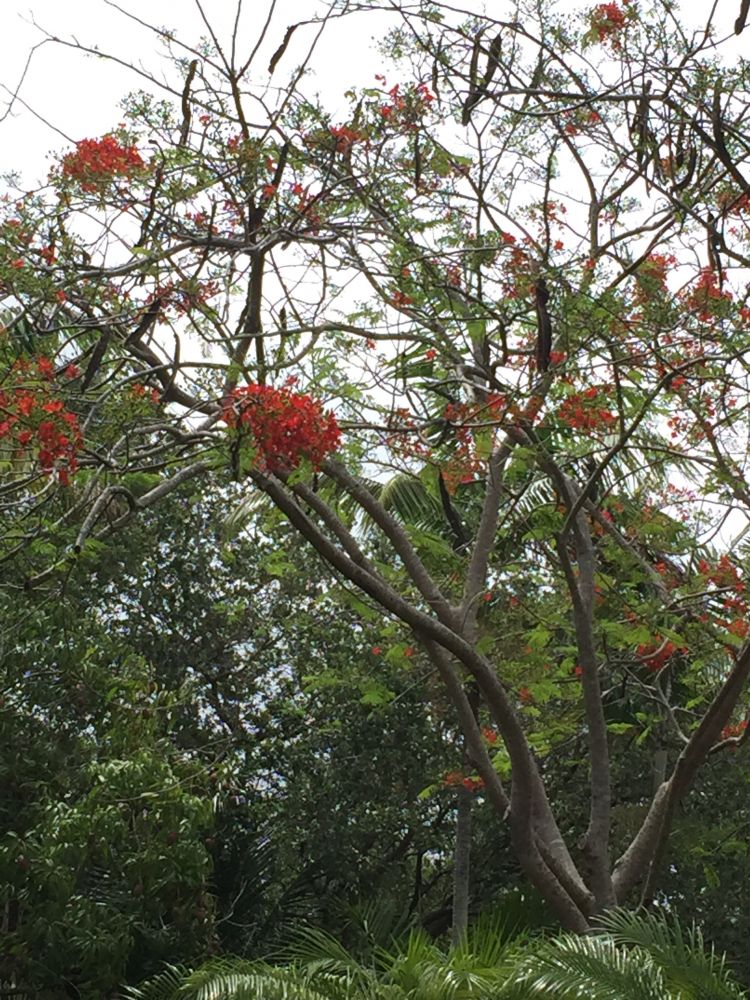角落里高大的凤凰树也稀稀拉拉开了一些红艳艳的花团,甘心做远远的陪衬。
