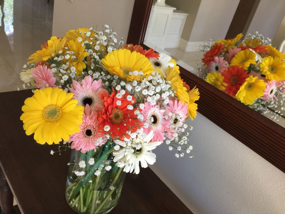 女儿钦点的雏菊,装点每一个餐桌,在满天星里灿烂地笑着,尽情展现初夏的明媚。
