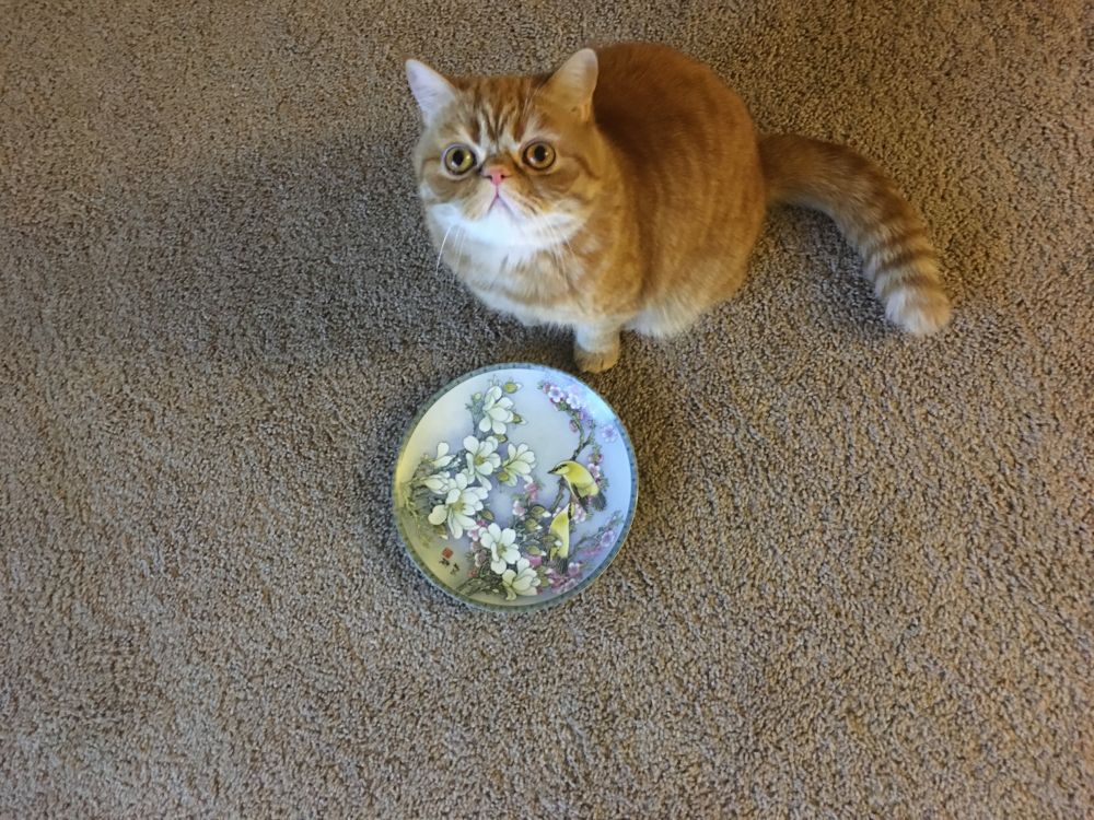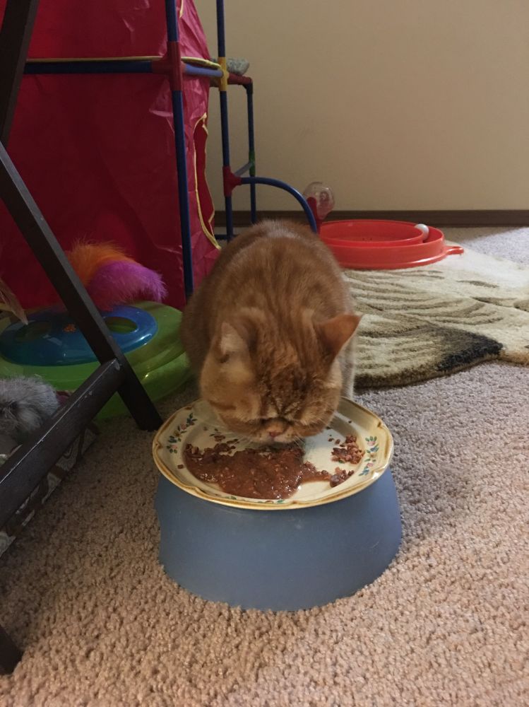 睡醒之后,大宝饿了,对着空盘子喵喵叫: