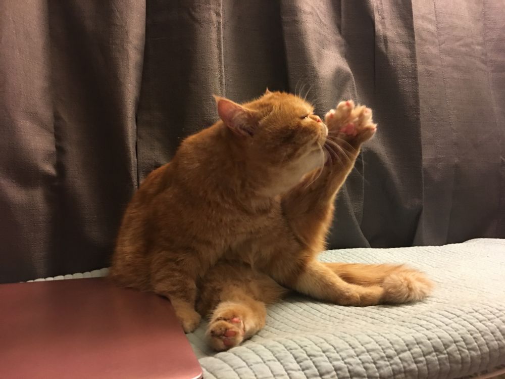 洗完澡的花大宝,有点不开心: