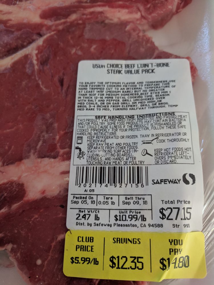 我家买肉的定点店是 SAFEWAY,因为他家店肉新鲜,价格也不错。近来发现猪肉价格真的好低。牛肉同样状态。除了人外,我家两只猫也是享尽了口福。估计猫都开始犯嘀咕,为啥天天牛肉猪肉,咋不来点羊肉换换口味?
