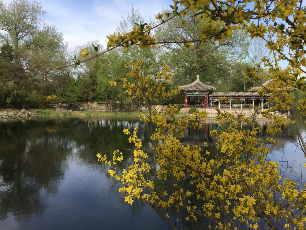 四月的清华园,春光明媚,我一个人闲着在校园里转悠。在绿园,我站在花丛中眺望近春园荷塘水阁,长廊连结着的两座彩色亭阁,沐着淡淡的晨光,仿佛水上的画舫。四月的荷塘不见荷花,但荷塘边扬柳青青,绿叶荡着春风,风情正浓。沿着小径,我到荷塘边,攀上一块巨石,坐在柳树下。阳光隔着树叶照进荷塘,柳树的枝条倒映在水面上,丝丝倩影犹如画上一般。“登临望故国,谁识,京华倦容。长亭路,年去岁来, 应折条条过千尺”。不知为何,周邦彦的词突然在心头飘过,我不禁怀念起当年小荷塘的夏夜,怀念起那荷塘上的月色和月色下的荷塘。