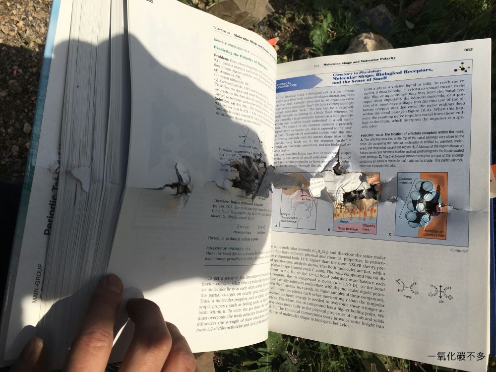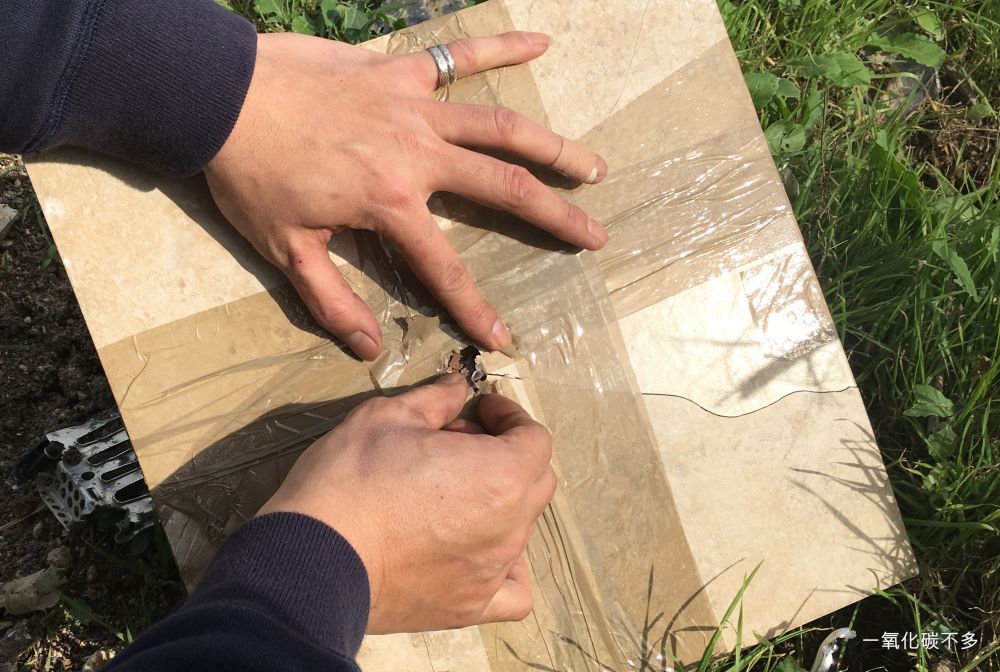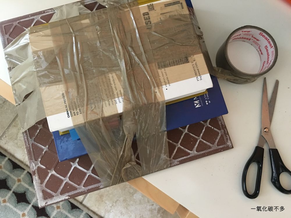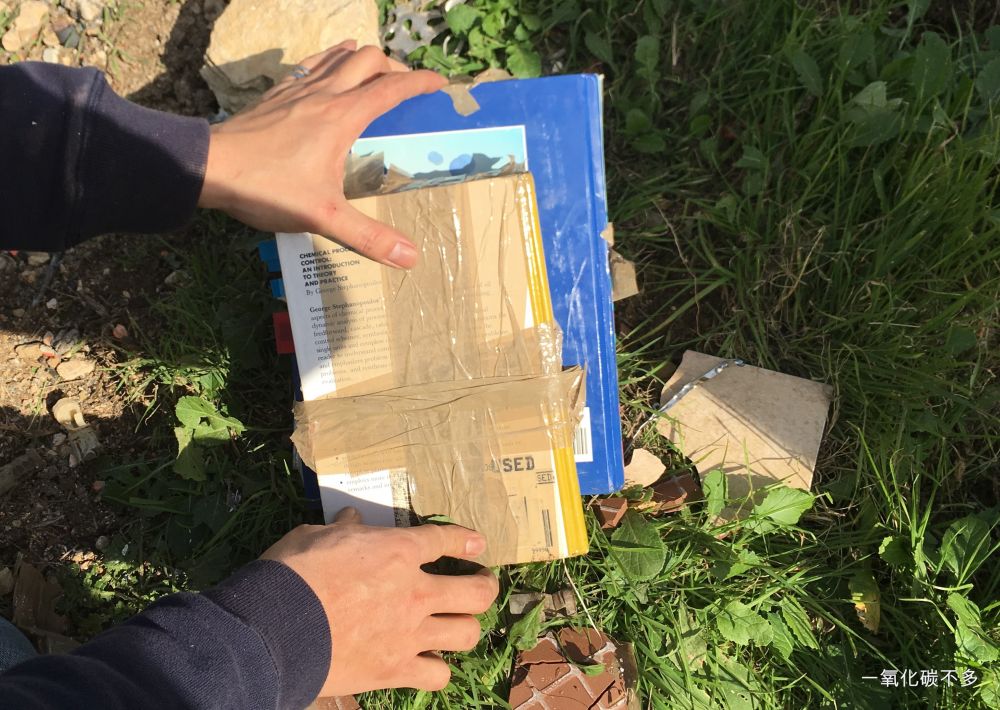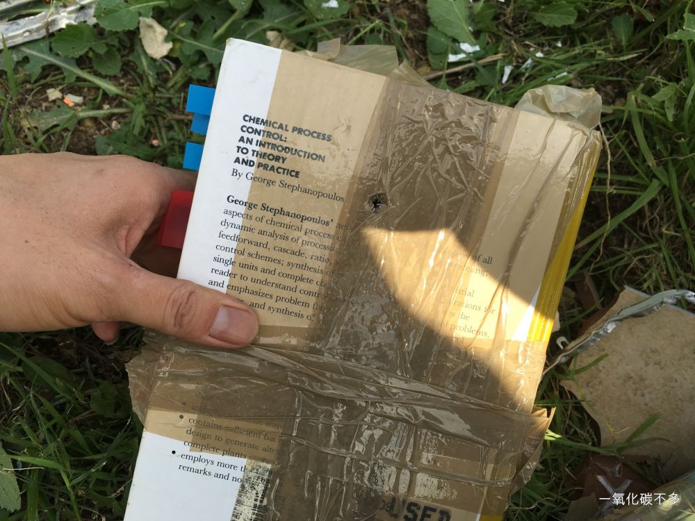 作为复合型的防弹板,这个材料方面其实很简单,一块瓷砖作为前面吸收动能的缓冲板,两本厚皮书作为抵挡子弹弹头和碎片的纤维材料,一卷胶带作为捆绑瓷砖和书本的粘合物,是不是非常简单?我这次用来测试的是普通家居装修铺地板的瓷砖,两本分别是1100页,和700页厚的厚皮大学化学教科书。至于书要多厚才能起到挡住子弹的作用呢,我的信息来源说得不是很清楚,所以我挑了两本我心目中认为可以挡住5.56NATO步枪弹的千页左右的厚度来测试。那么为什么是化学而不是物理数学呢?因为这里面有哥的心酸往事呀,看着这些个化学教科书,当年被化学女老师疯狂虐待无情摧残的场景又一一拥上心头。所以,在乱枪打爆这两本书的时候,确实心情相当的愉快,估计当年秦始皇焚书坑儒也就是这个感觉。
