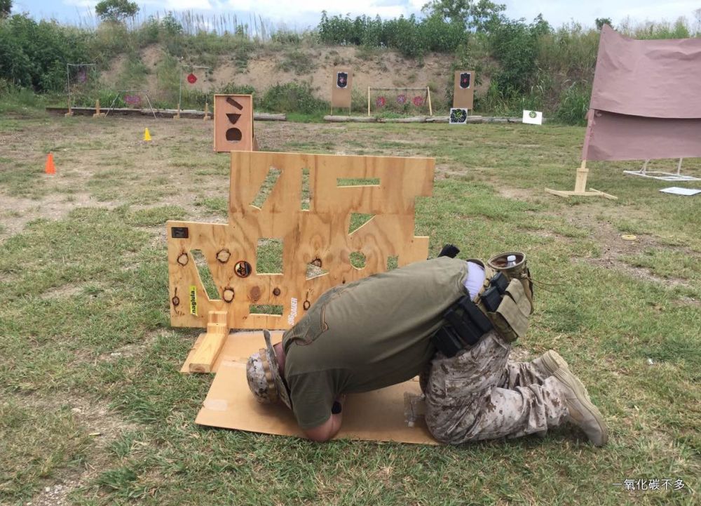 障碍后射击是实用射击里面的必修课,正式的9孔板障碍练习是有一定的尺寸要求和角度要求的,目的是训练学员各种角度转换射击的速度和反应,在你熟悉以后,你可以自己改动大小和角度,目的是让增加射击的难度。