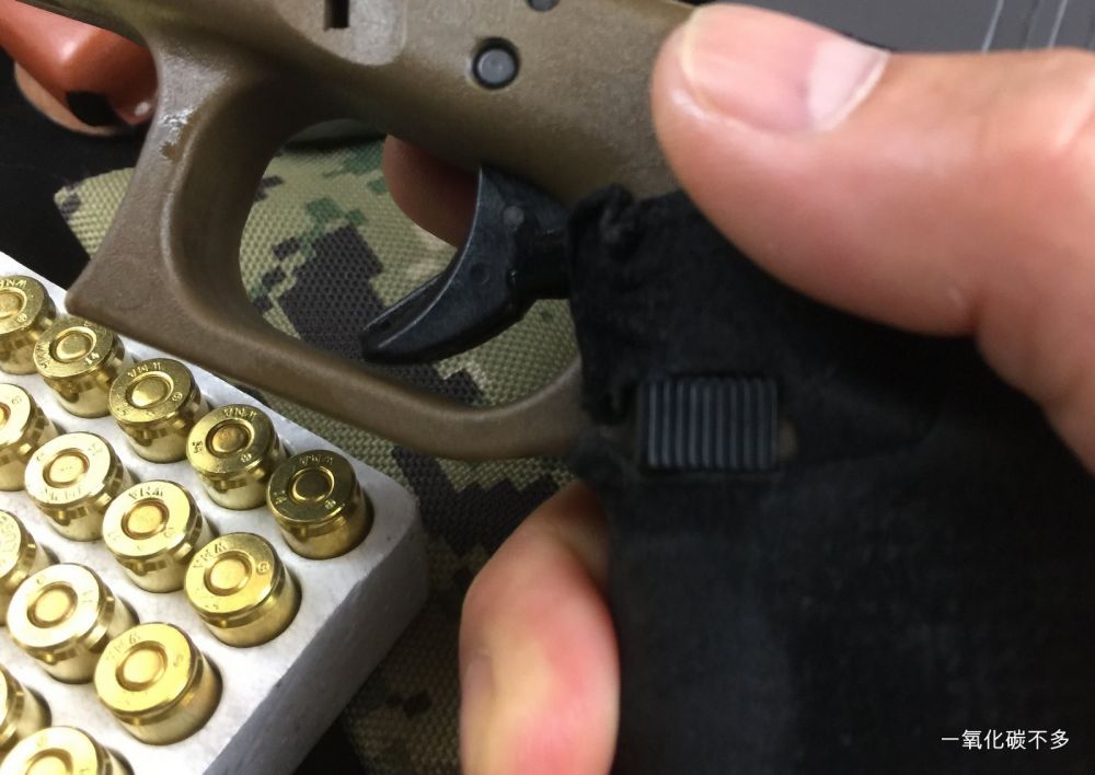 2. Condition 1: 也就是C1。子弹上膛,击槌扳起,保险杆处于安全状态。 对于格洛克(GLOCK)一类的没有外置保险杆的手枪来说,子弹上膛的GLOCK在食指没有压住扳机保险的情况下,是属于Condition 1的。所以枪友之间打招呼互问对方携枪是什么状态的时候,平常带GLOCK子弹上膛放于枪套的朋友通常都会面有得色的说“Condition 1”。 为神马面油得瑟?因为不是对于枪械安全操作有足够的经验和长久的训练养成的肌肉记忆,你是不敢随便上街就Condition 1的。(悄悄告诉你,通常面油得瑟的小盆友多是拿到携枪证不久的人,一般的老鸟是不会告诉你所带枪的状态,或者根本不会告诉你带了枪)。好吧,我当菜鸟的日子也得瑟过可以了吧?话说回来,这种方法是我平常携带的方法,也是美国很多执法人员携枪的方法。