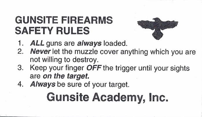 除了上面的理论外,库珀主张枪支安全使用的四个基本规则,到了今天已经成为全世界专业射击训练或者业余爱好者奉为金科玉律: