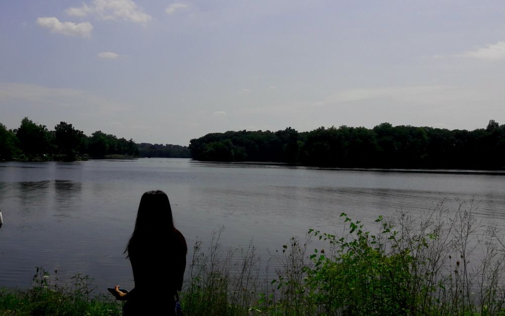 走了好久也没看见鹤,正在想是不是仙鸟知道我心情不好不肯来见我,小妹眼尖,指着远远几只仙鹤给我看,呆呆的,看不出仙姿。继续往前走,下了山坡,走上了湖边树林里一条小径。树叶茂密,看不清小径通向何处。小妹害怕了,问在前面领路的爸爸是不是迷路了,她想往回走。小径幽静,我想向前走。她爸不睬我俩,继续往前走。走了不一会儿,就到了一个开阔的地方,看得见回去的大路了。