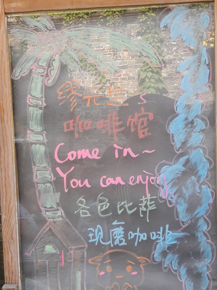 (咖啡馆不在南京。这个老板的文化程度和我差不多,差南京人一截。)