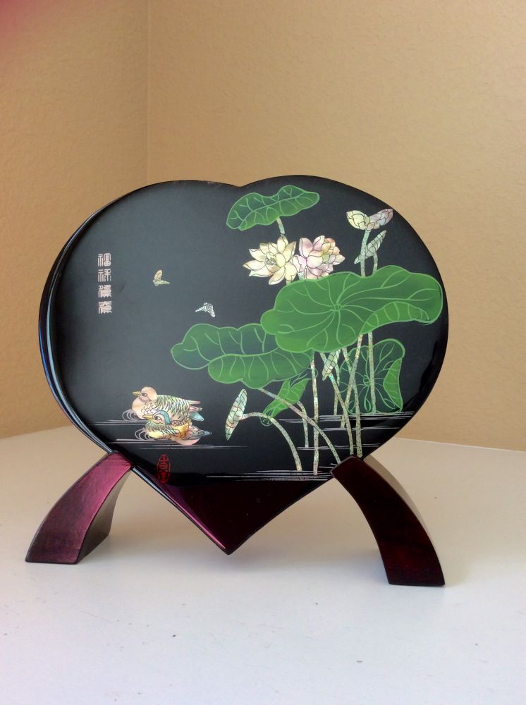 这个是从扬州带回来的镶嵌有贝壳的漆器,看着有点亮闪闪的