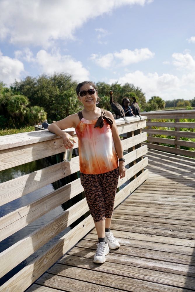 这个湿地公园我经常自己来,每次都有不同的惊喜。我喜欢鸟儿飞翔的样子,我喜欢蓝天白云和沼泽里的植物。我喜欢自然的风景,以及公园里锻炼健身,积极乐观的人们。今天步行将近三英里,也达到了锻炼的强度了。
