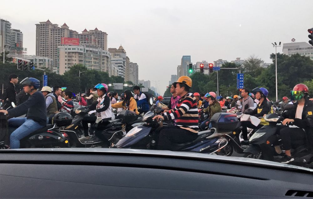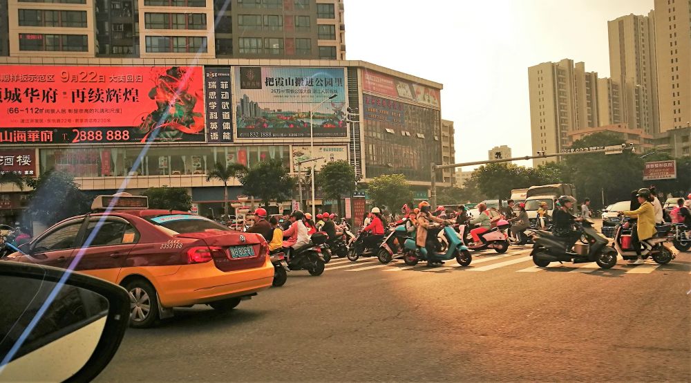 好累啊,没有闲情逸致坐公交了,打车回酒店。市区的十字路口,电动车洪流。