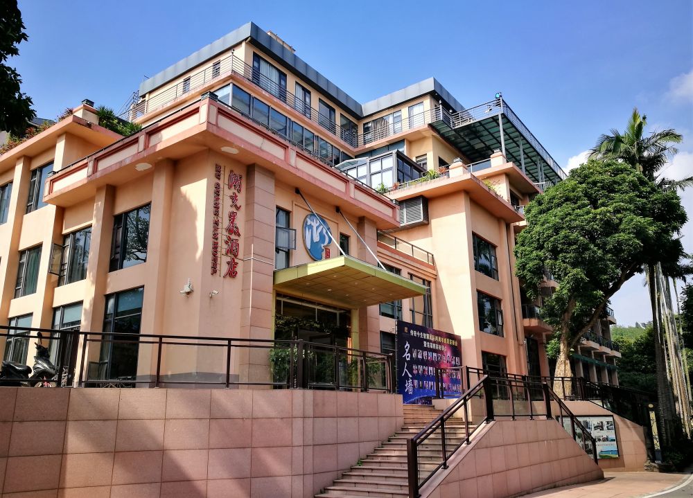 从西门入园,先找地儿吃饭,不远处是湖光岩酒店,就它了,一进酒店,在餐厅正赶上一个旅游团宴会接近尾声,大堂也是旅游团在退房,乱哄哄的。酒店外观还不错。