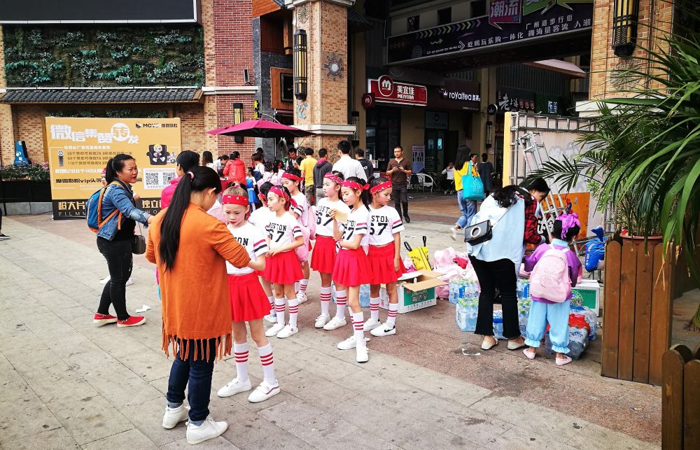 周末通常都有活动,商品促销,演出等等。今天是一帮小演员展示才艺。
