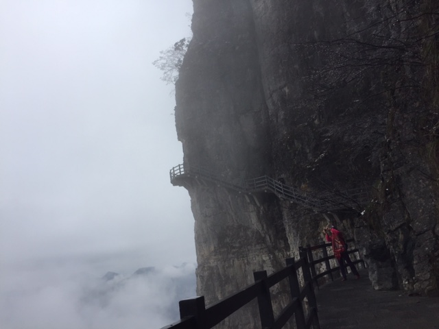 我平时走路不是太多,没过两个山头我就有点双腿迈不动的感觉,但是当没有选择的时候也就只有咬紧牙关继续往前走。说到没有选择,沿途都有抬滑竿的招生意揽客,可以抬过几个山坡也可以抬全程。不过我不可以想象一个人被抬着轿子面对无限风光,那岂不是辜负了这峰这景?当然,身体状况出问题那另当别论。