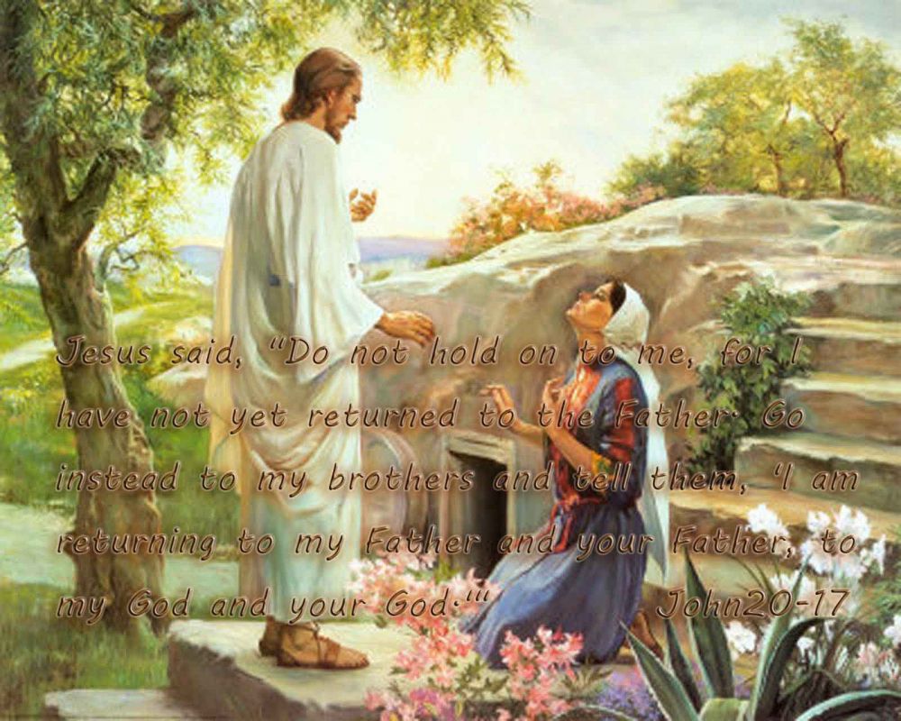 Jesus simply stated her name, "Mary." It was enough. As the Lord Jesus called Mary by her name, she immediately knew her Shepherd's voice. "She turned toward Him and cried out in one word, 'Rabboni' which means Teacher." Then Jesus said to her, "Do not hold on to me, for I have not yet returned to the Father." Later, Jesus invited His disciples to touch His body and did not rebuke those who did. But Jesus knew that Mary had only known Him in His human form. In her great joy, she tried to hold on to Him, unwilling to let go. Mary had not yet realized a new relationship was to begin, one of faith instead of merely sight and touch. After His ascension, the Lord would bless Mary with a far closer relationship through the Holy Spirit. There would be no problem for Mary to "hold on" or "clung to" the Holy Spirit. She was welcomed to do so. Then Mary would enter into the new, closest, permanent communion with Christ, her Lord. Mary was privileged to be among the first to see, talk to and touch the risen Lord. But such a privilege always carries responsibility. Jesus immediately gave Mary a task, "Go instead to my brothers and tell them, 'I am returning to my Father and your Father, to my God and your God." By claiming that Mary and Himself having the same "Father", the same "God", Jesus confirmed that Mary belonged to His family. And Mary was commanded to tell of His resurrection and ascension to "His brothers" who were also His and her family members. The privilege and command that Jesus gave to Mary, He gives to every believer. Mary took her privilege joyfully, took her command seriously. She returned to the disciples with the good news, "I have seen the Lord!" And she told them what Jesus had told to her. Has He ever wept away your tears and given you joy so you can have a similar, genuine, personal testimony, "I have seen by faith the Lord!" Then your task is the same! Tell others about Him and what He has done for you!