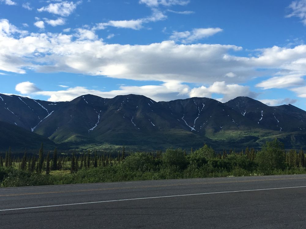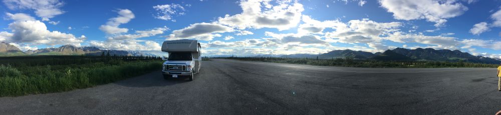 一路上我一个人开RV,一开始很紧张,过了一会儿看看自己能把车保持在二线当中,就好了一些,但是下坡时,还是觉得控制不住车,速度降下来才放心,好在阿拉斯加路上车少,一路顺利。