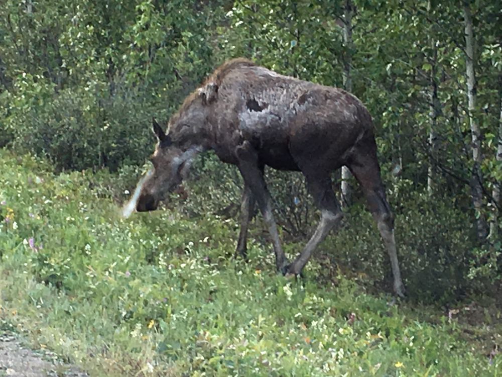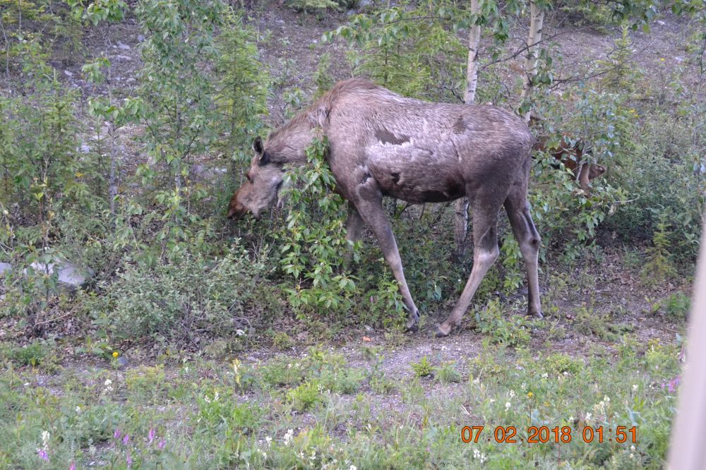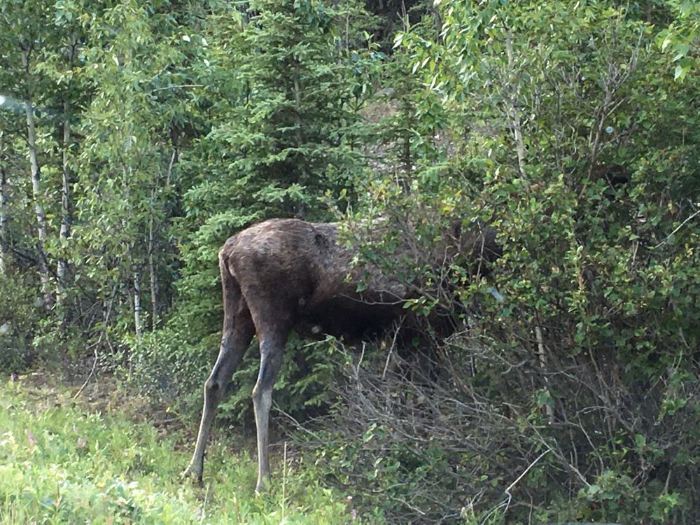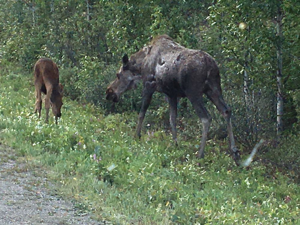 刚进公园,前面的车都停下来了,原来大家都在看这二头驼鹿(Moose)母子俩。