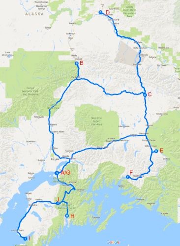 第一天:在凌晨12点59分飞到Anchorage,住飞机场旅馆(A)。坐shuttle到Great Alaska Holidays做RV orientation; AnchorageCostco购物; 驱车七个多小时到达Denali Denali National Park,住宿Riley Campground (B)。